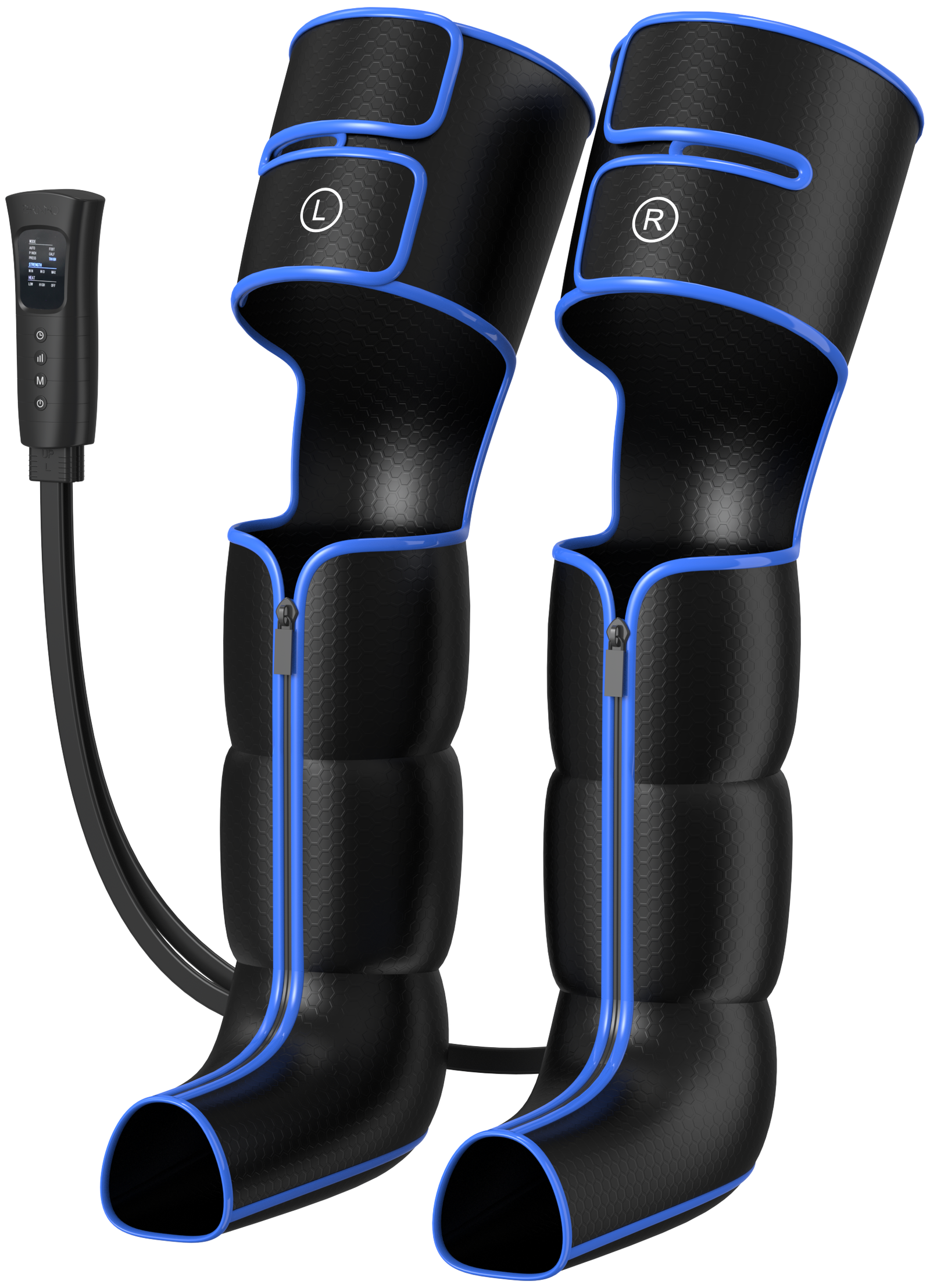 Het apparaat bevat 24 airbags die ritmisch opblazen en leeglopen. Dit creëert een masserende druk op je voeten, kuiten, knieën en dijen, waardoor spanning wordt verminderd, afvalstoffen worden afgevoerd en de bloedcirculatie wordt gestimuleerd.
