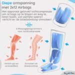 De 24 ingebouwde airbags oefenen ritmische druk uit op je voeten, kuiten, knieën en dijen. Dit helpt opgehoopte spanning en afvalstoffen af te voeren, wat resulteert in merkbare vermindering van spierpijn, zwelling en vermoeidheid. Ook bij langdurig zitten of werken in een statische houding brengt dit apparaat je lichaam weer in balans.